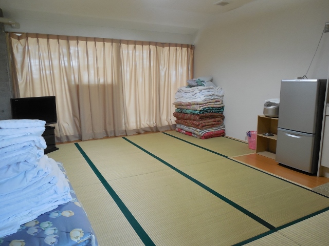 2014/05/09 Category : 施設案内 旅行村の話 こんにちは 天気が良いですね。 昼寝したくなりますね。 はい今日はですね、 旅行村の宿泊施設について書いていこうと思います。 ここはですね大きく分けて5つの宿泊プランがあります。 ①管理棟 ②トレーラーハウス ③ログハウス ④海の家 ⑤テントサイトとあるわけですが まずは①管理棟から説明していきますね。 管理棟は駐車場から一番近くにあるコンクリートでできている建物で 外装はこんな感じです。↓ そして中に入り正面玄関↓ 部屋は4つに分かれていて 手前右側に10畳の部屋が1つ 奥左側に10畳の部屋が1つ 正面奥に10畳の部屋が2つとなっています。 各部屋の内装はこんな感じでエアコン、テレビが付いています。↓ 正面奥の10畳の部屋は 隣同士になっているので団体での宿泊にもおすすめです。 ※炊事場、トイレ、風呂はすべて共同となっています。 料金1泊(素泊まり) 高校生以上1人 2700円 中学生以下1人 2300円 幼児 無料 1人からでも宿泊できますのでお気軽にご相談下さい。